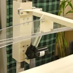 操作はワイヤレスリモコンを2個併用し、頭側のベッドの角に1個、脚側に1個置いてどこでも操作できるようにしました。本体の移動はスタンド式なので簡単です。停電などで止まってしまっても、腕木がポリカーボネート製でしなるので、容易に抜け出せます。